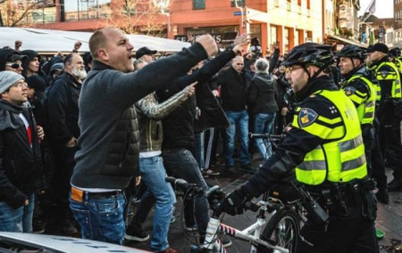 В Ейндховені учасників акції оточили футбольні фанати, прихильники традиційного героя. Вони кидали в протестувальників пляшки з пивом і яйця. Поліції довелося втрутитися, щоб розділити дві групи - в результаті безладів затримали 19 людей.