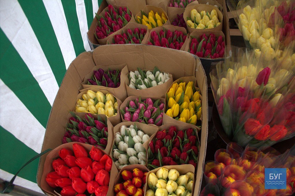 Великою популярністю користуються тюльпани, їх тут найбільше. Різноманітні кольори, сорти, є такі, які висаджені в горщики. Ціна за одну штуку 20-25 гривень. Майже кожен продавець пропонує «торгуватися». Тюльпани у вазоні – від 50 до 100 гривень.