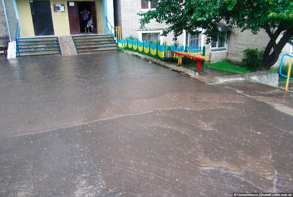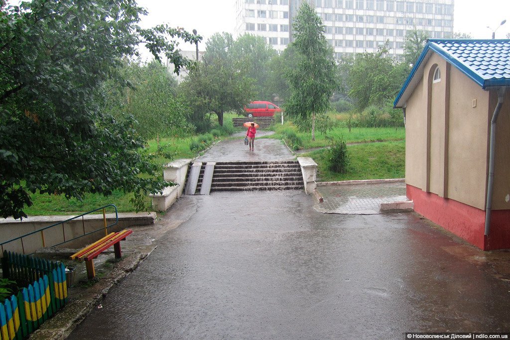 Дощ приносить мешканцям будинку на вулиці Луцькій, 26, що у Нововолинську, великі проблеми. Не маючи відповідного стоку, вода під час зливи заповнює усі підходи до помешкання, підмиває фундамент, руйнує сходи. Про це інформує Нововолинськ діловий.