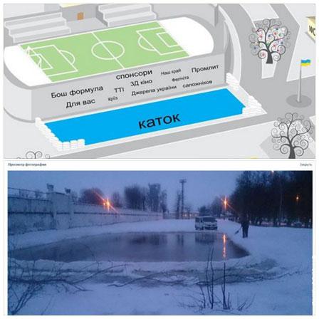 У центрі міста Нововолинська, біля стадіону «Шахтар», де зазвичай розташовується приїжджий цирк, заливають каток.