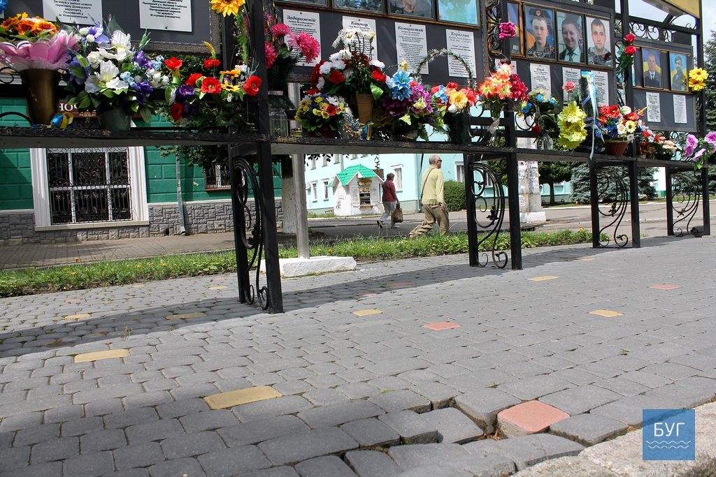 Бруківка біля стели Героям у Нововолинську починає руйнуватися.Стелу підфарбовують на свята.