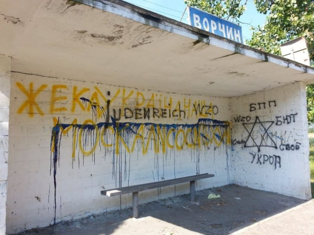 Володимир Музиченко зауважує, що після його звернення до відповідних служб, аналогічні написи залишаються на зупинці с. Ворчин - на міжнародній трасі, по якій їдуть іноземці з Європи і роблять дуже неприємні для України висновки про українців.