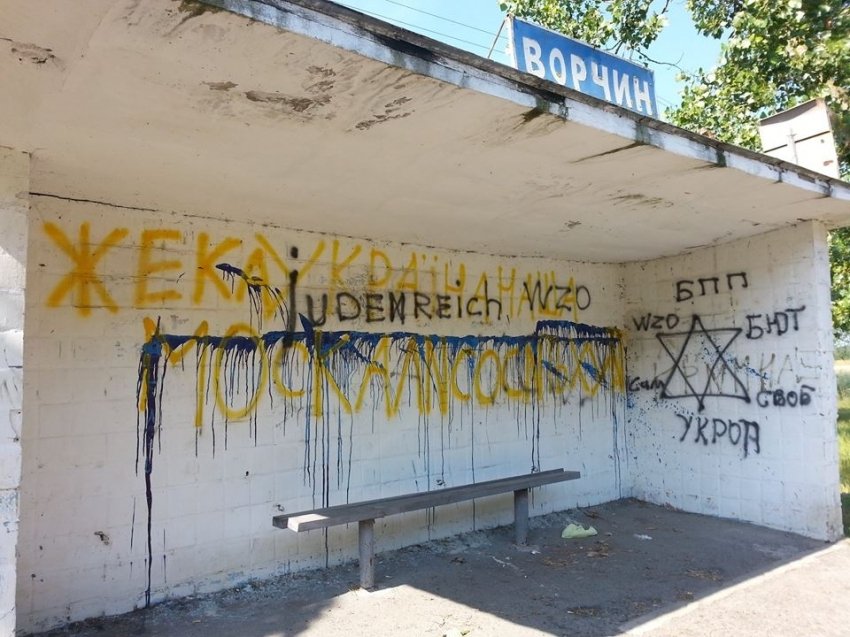 Володимир Музиченко зауважує, що після його звернення до відповідних служб, аналогічні написи залишаються на зупинці с. Ворчин - на міжнародній трасі, по якій їдуть іноземці з Європи і роблять дуже неприємні для України висновки про українців.