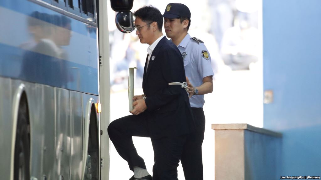 49-річного фактичного керівника групи Samsung (його батько, 75-річний президент групи Лі Ґон Хі, ще 2014 року потрапив до лікарні з інфарктом і досі не повернувся до справ) затримали ще в лютому, коли спалахнув скандал, що врешті призвів до імпічменту в березні президентки Південної Кореї Пак Кин Х’є. Його звинуватили в наданні 36 мільйонів доларів як внесків до доброчинних фондів, якими керувала подруга президентки Чхве Сун Сіль, в обмін на політичні вигоди. Над обома жінками також нині тривають суди.