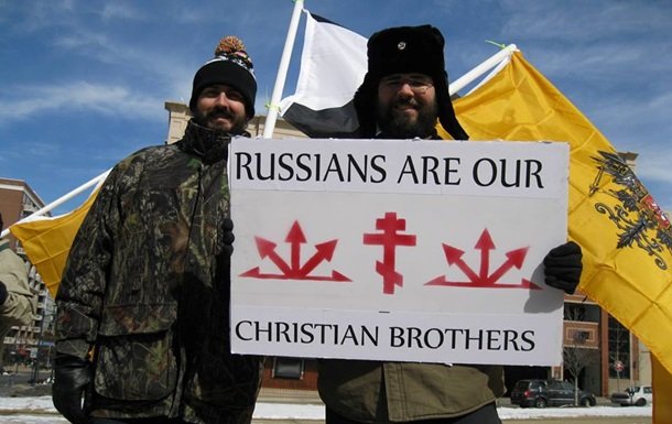 У мережі з'явилися фото, на яких видно, що під час подібних маршів білі расисти в Шарлоттсвіллі використовують плакати «Росіяни - наші брати-християни», «Росія - наш друг» і навіть проводять акції на підтримку Новоросії.