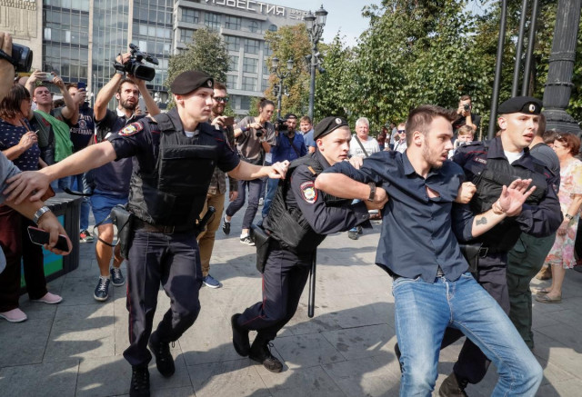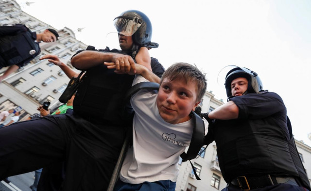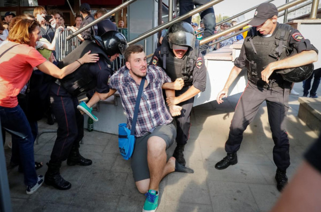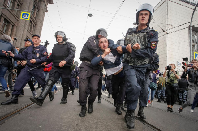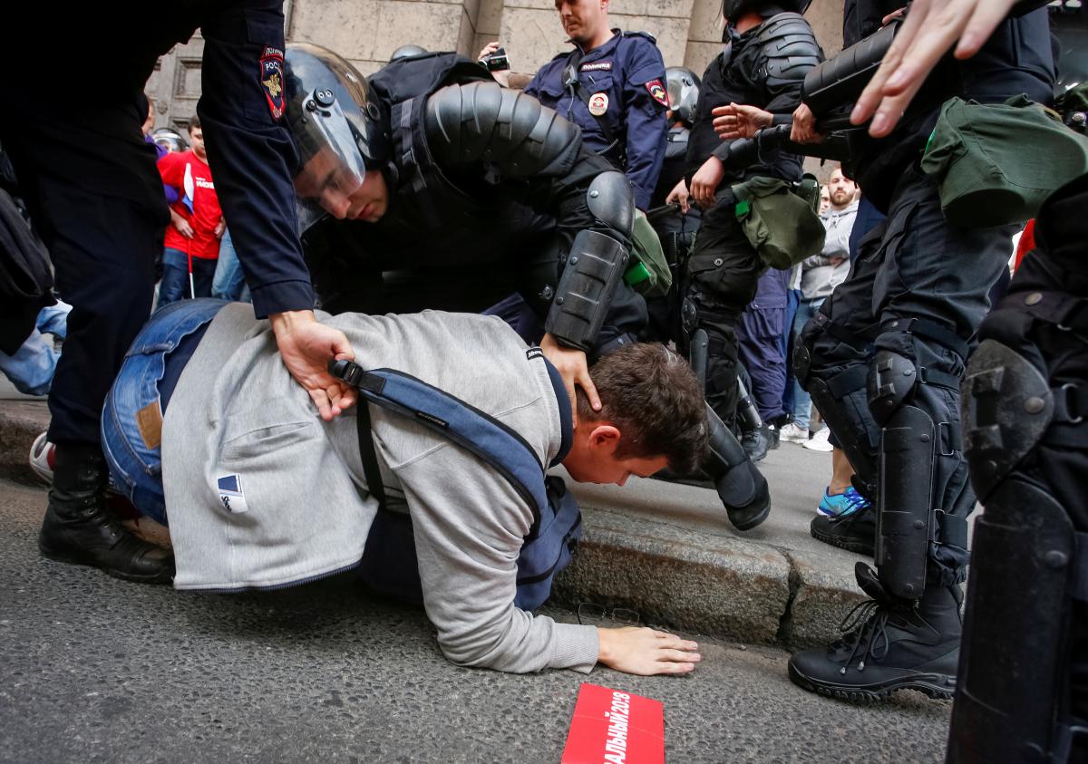 Про це повідомляє телеканал УНІАН з посиланням на "Дождь". Крім того, за даними "Фонтанки" в Пітері затримали вже близько 400-500 осіб. Співробітники поліції зупинили ходу супротивників пенсійної реформи на Пироговській набережній. Активістів відводять в автозаки.