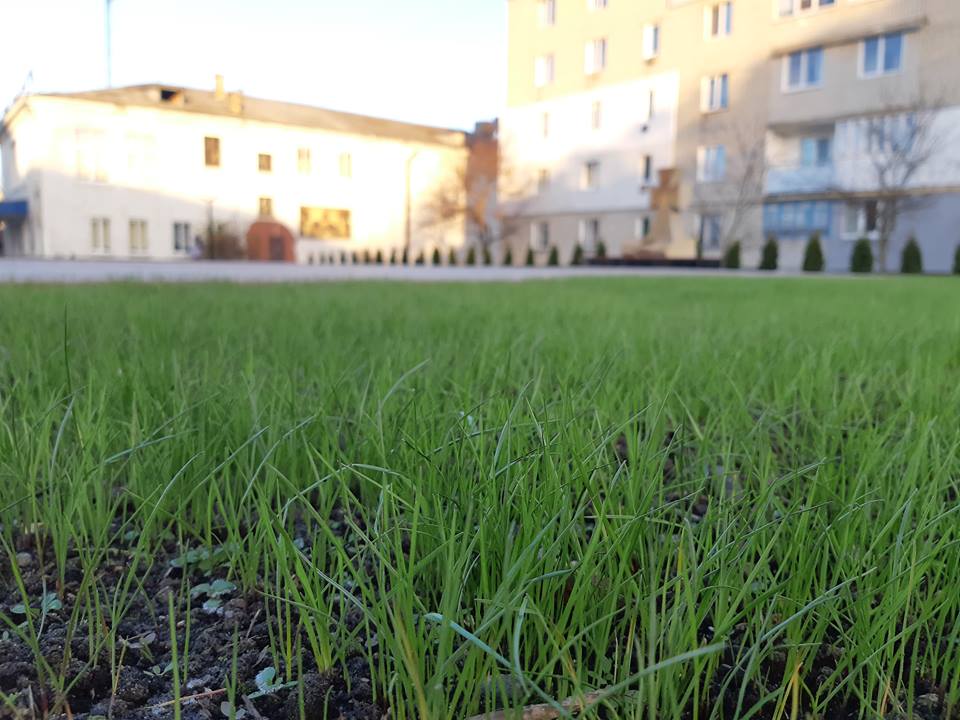 Спеціалісти оцінили ситуацію та склали кошторис робіт. Упродовж жовтня-листопада працівники підприємства підготували та зачистили ґрунт, засіяли й утрамбували траву відповідно до технологій озеленення та висадили туї.