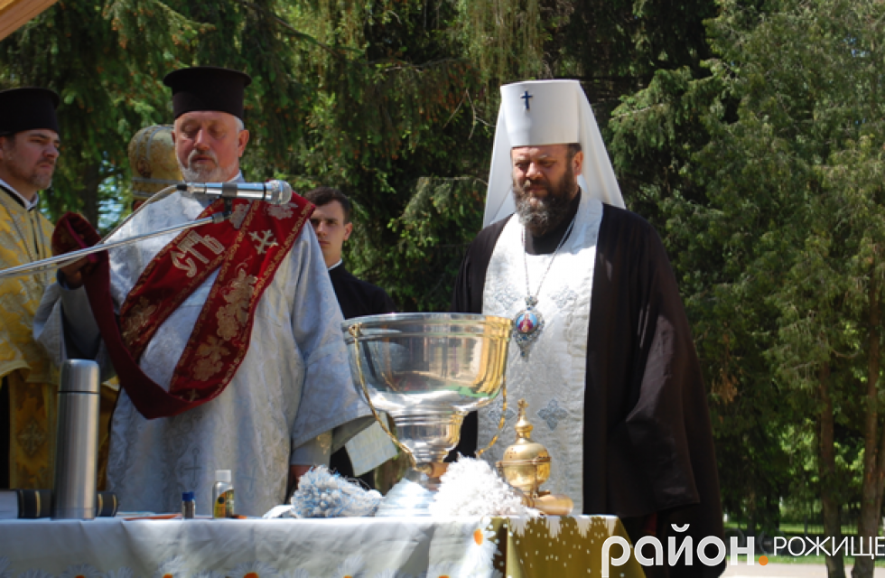 Високопреосвященніший Михаїл – митрополит Луцький і Волинський всіх свято привітав із цією подією. Він і очолив молитву, яку відспівали на території майбутнього храму.