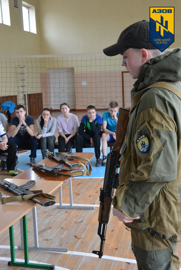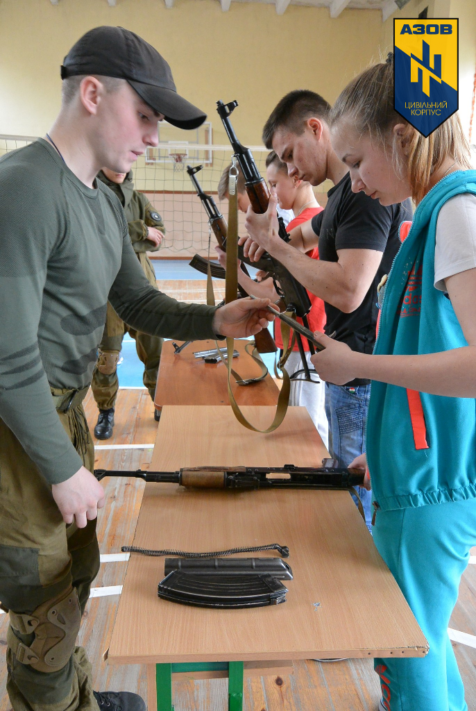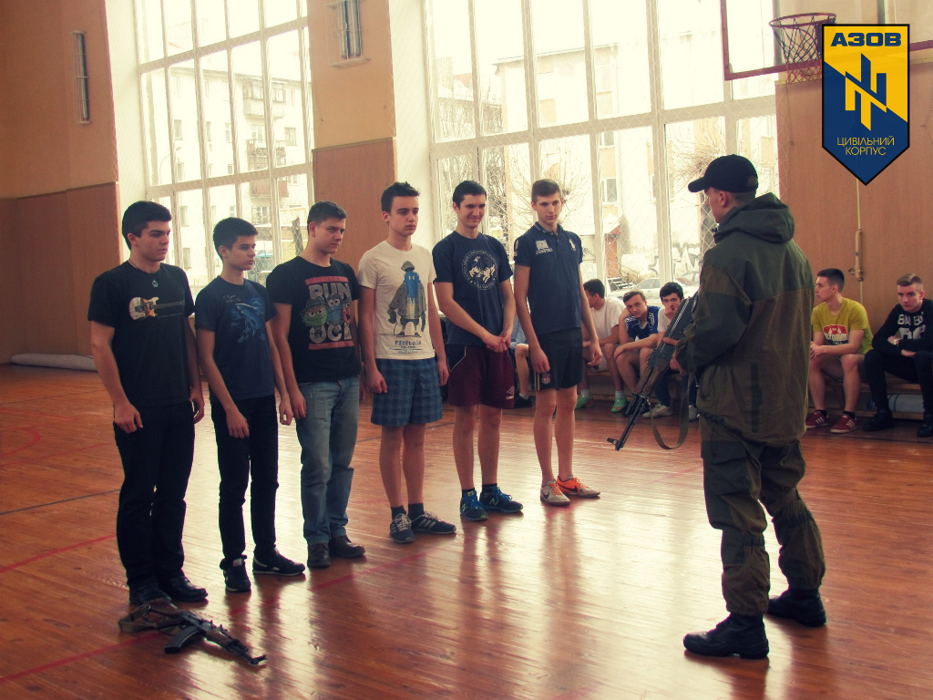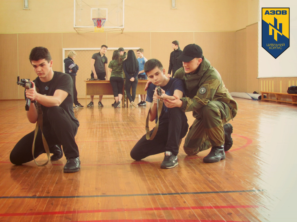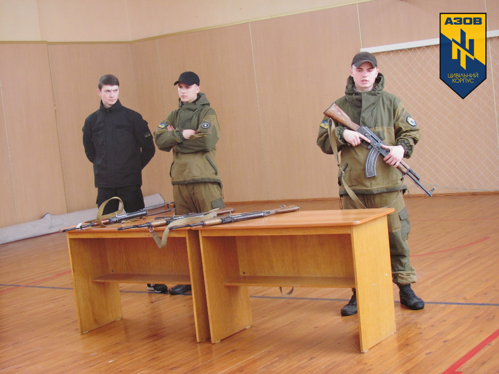 Для проведення фізично-виховного заходу організатори з Цивільного Корпусу запросили професійних інструкторів з Києва, які займаються підготовкою новобранців у полк "Азов". Богдан Морозов та Денис Когут розповіли учням основні правила техніки безпеки поводження зі зброєю, про дисципліну та відповідальність. Учні мали змогу навчитися правильно тримати зброю, збирати та розбирати автомати, отримати базові навички тактичної підготовки та послухати справжні бойові історії. Вишкіл зацікавив не тільки хлопців, участь прийняли і дівчата. Школярі з великою цікавістю та відповідальністю слухали та виконували вказівки інструкторів.