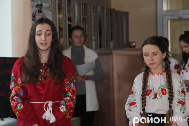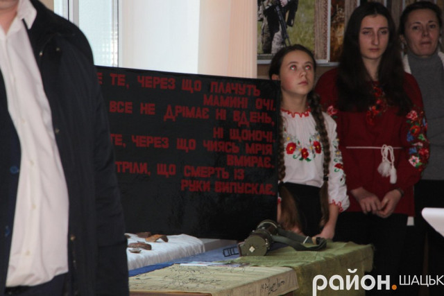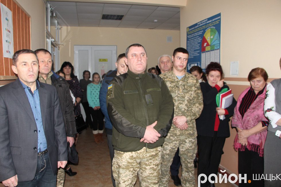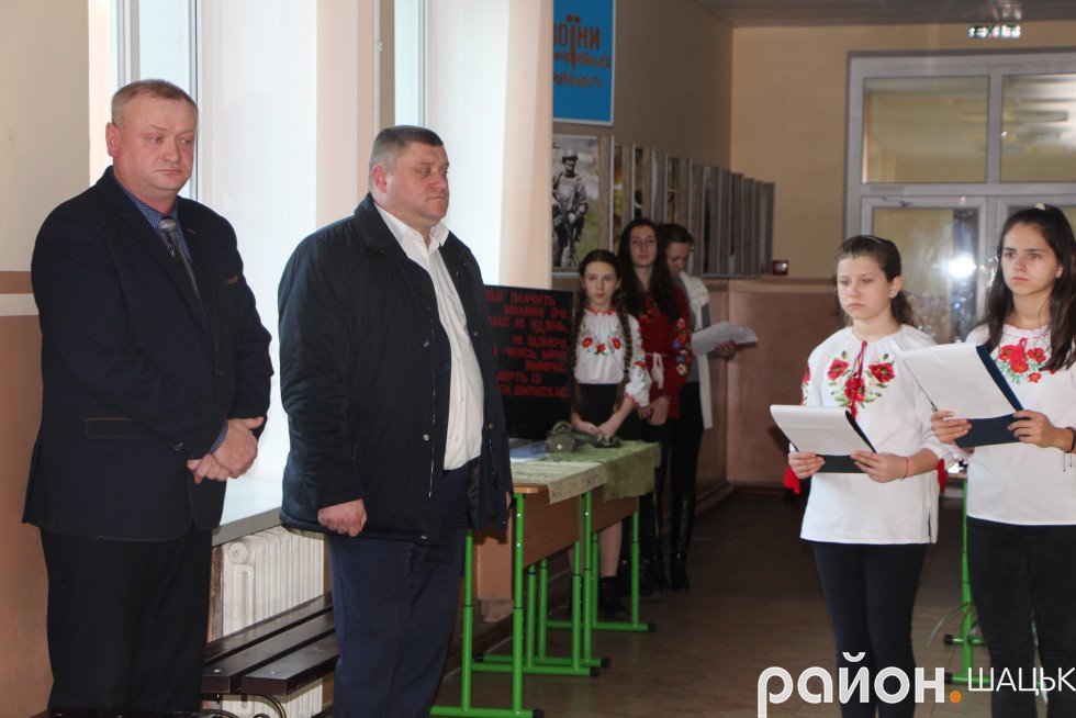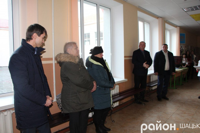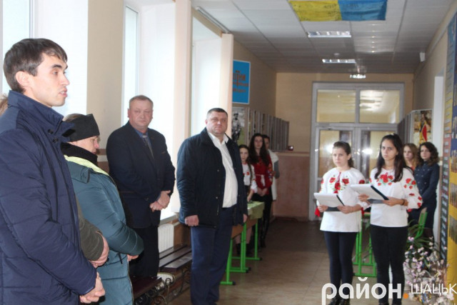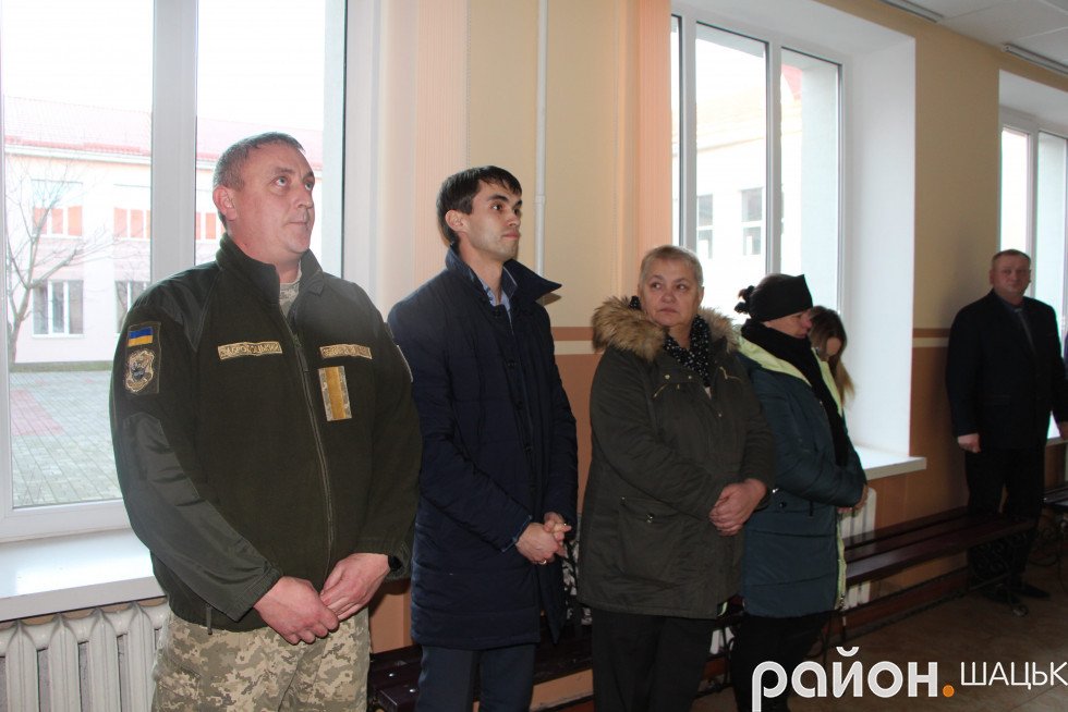 На відкритті окрім представників влади, небайдужих людей, директора, педагогів та учнів школи були і мама загиблого шачанина Сергія Мокренка - Любов Буз та його сестра Анна. Про це інформує Район.Шацьк.
