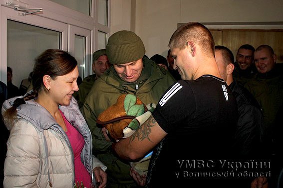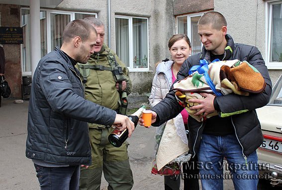 У бійця спеціальної роти патрульної служби міліції народився син. Тож, аби привітати бойового побратима Романа Коротицького та його дружину Іванну, біля полового будинку у Горохові зібрався майже весь особовий склад підрозділу, - повідомили у прес-службі волинської міліції.