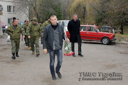 У бійця спеціальної роти патрульної служби міліції народився син. Тож, аби привітати бойового побратима Романа Коротицького та його дружину Іванну, біля полового будинку у Горохові зібрався майже весь особовий склад підрозділу, - повідомили у прес-службі волинської міліції.