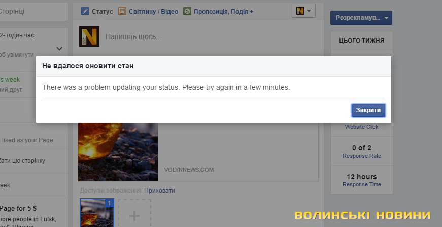 Велика кількість міжнародних ЗМІ та компаній сьогодні не можуть постити новини у соціальній мережі Facebook.