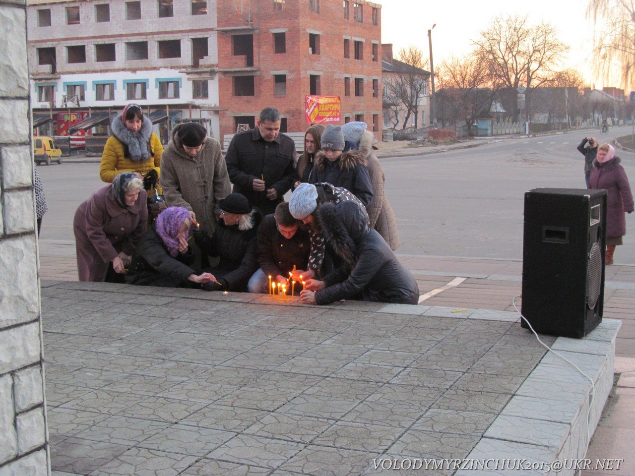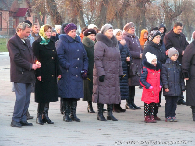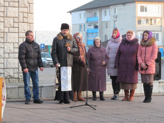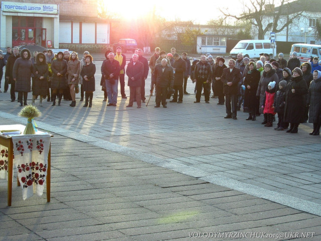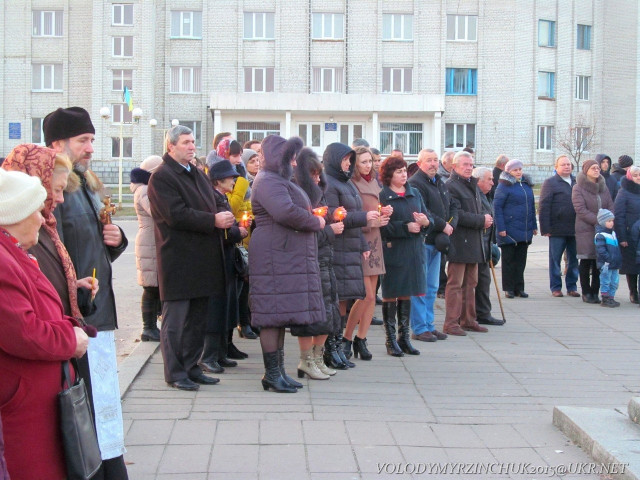 На центральній площі селища зібралися всі небайдужі старовижівчани, щоб помолитися, запалити свічку і вшанувати пам'ять всіх заморених голодом людей.