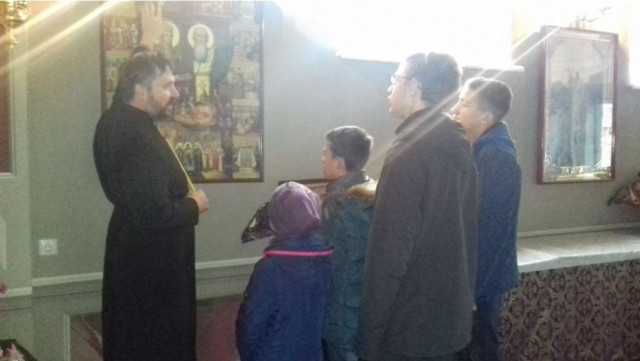 Вони зустрілися з членом Луцького Хрестовоздвиженського братства (відновленого) протоієреєм Василем Клочаком, настоятелем однойменної братської церкви. Отець Василь провів екскурсію – храмом і його підземеллям (криптою), де покояться останки братчиків часів Середньовіччя.