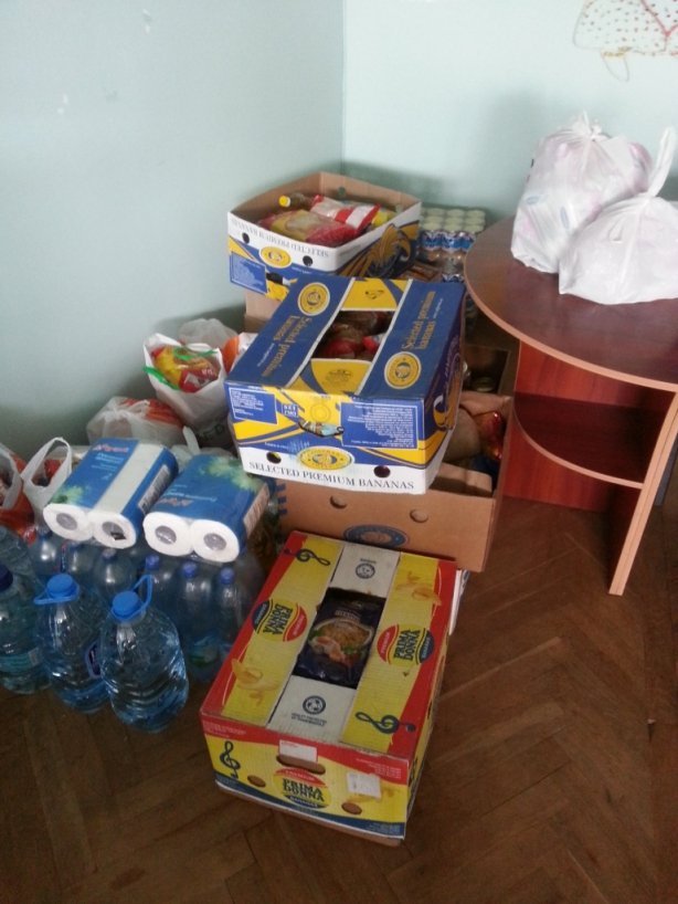 медикаменти: перекис водню (100мл) – 10 шт, бинти – 10 шт, активоване вугілля – 20 уп, фурацилін – 10 уп, анальгін – 10 уп, фталазол – 10 уп, стрептоцит – 10 уп, цитрамон – 10 уп, лівоміцетин – 10 уп, дицинон – 10 ампул тощо; продукти та засоби особистої гігієни: макарони – 34,3 кг, крупа гречана – 16,5 кг, цукор – 7 кг, «Мівіна» – 30 приправ, консерви м’ясні – 10 шт, консерви рибні – 23 шт, молоко згущене – 6 шт, чай – 12 пачок, цигарки – 42, зубна паста – 14 шт, туалетний папір – 32 шт, мило – 31, станки для гоління – 20 уп, шкарпетки – 10 пар, вода, сірники тощо.