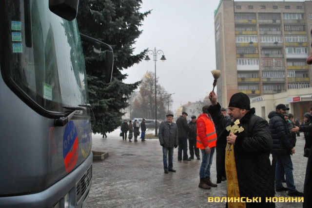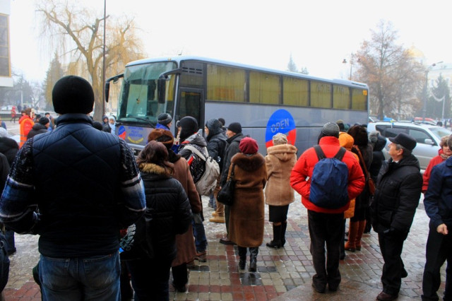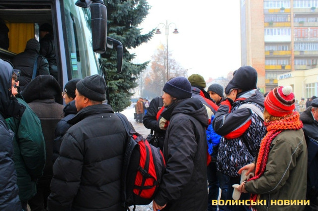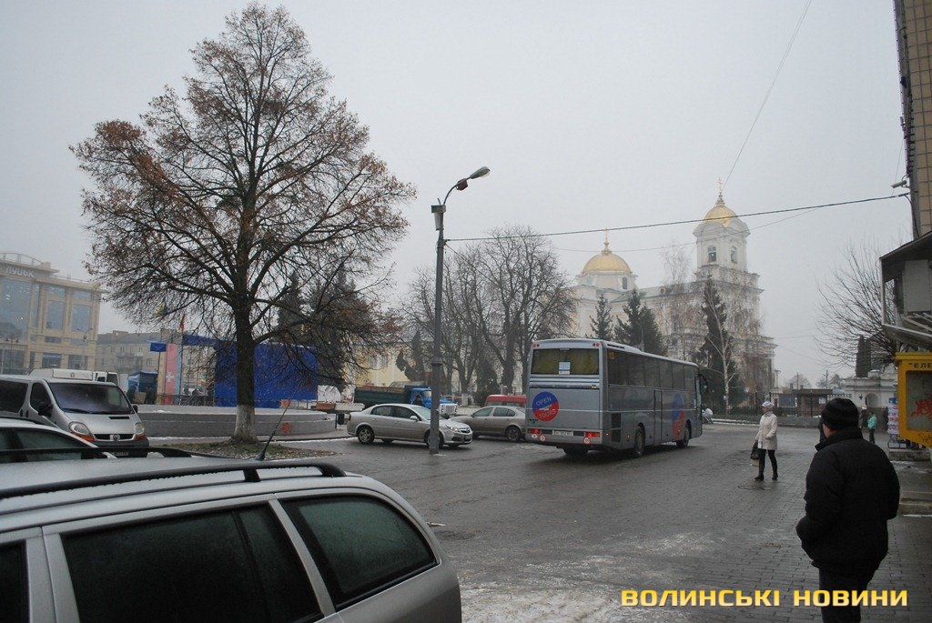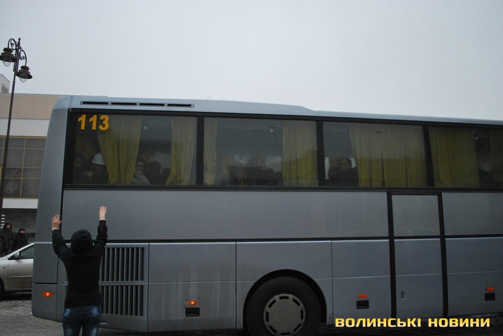 За станом на 13:30 до Палацу культури міста Луцька під’їхав «Неоплан», у якому розмістилися майже півсотні активістів.