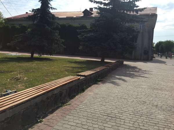 У центрі Ковеля поблизу фонтану встановлюють нові лавки, повідомляє КовельPost.