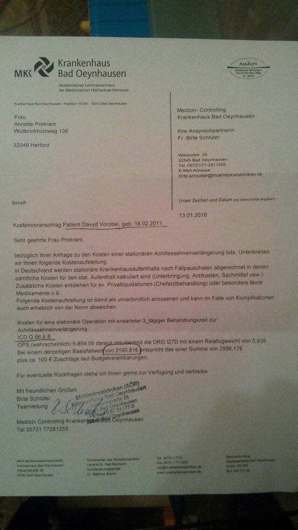Зі слів мами хлопчика Вікторії, німецькі лікарі поставили малюку діагноз ДЦП, енкопрес та хвороба Еквінуса (синдром балерини). Жінка розповіла, що сину необхідна операція у Німеччині, вартістю 220 000 гривень. Однак, для сім’ї дитини це надто велика сума.