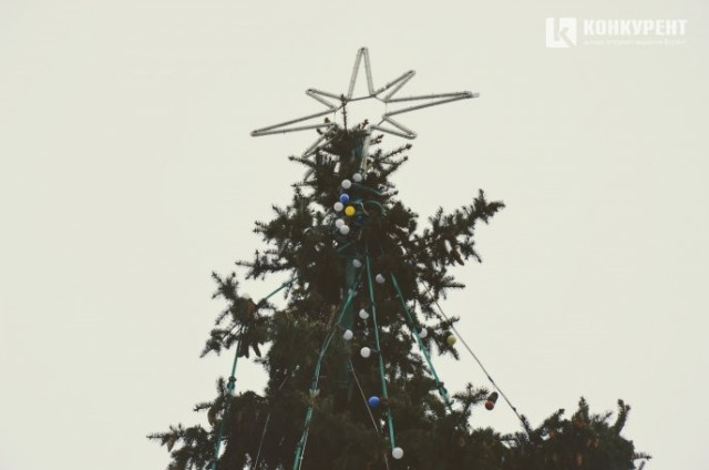 У центрі Луцька чепурять новорічні ялинки. Фото