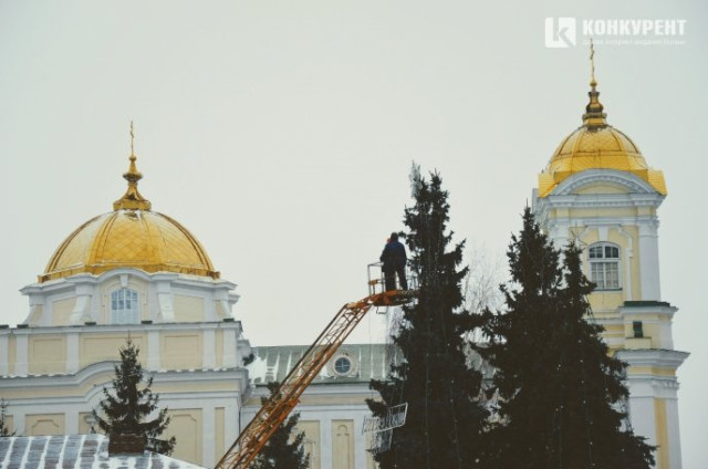 Працівники розповідають, що почали облагороджувати новорічні дерева ще минулого дня, а зранку 14 грудня продовжують роботи.