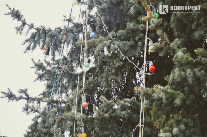 У центрі Луцька чепурять новорічні ялинки. Фото