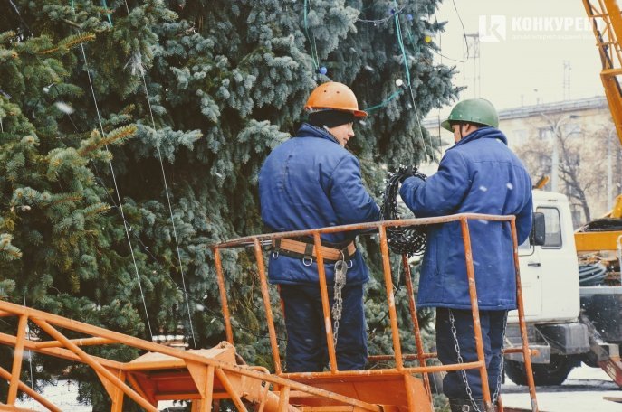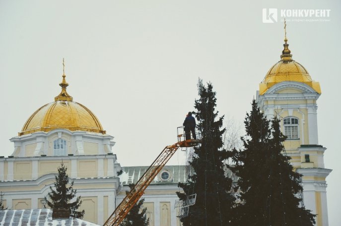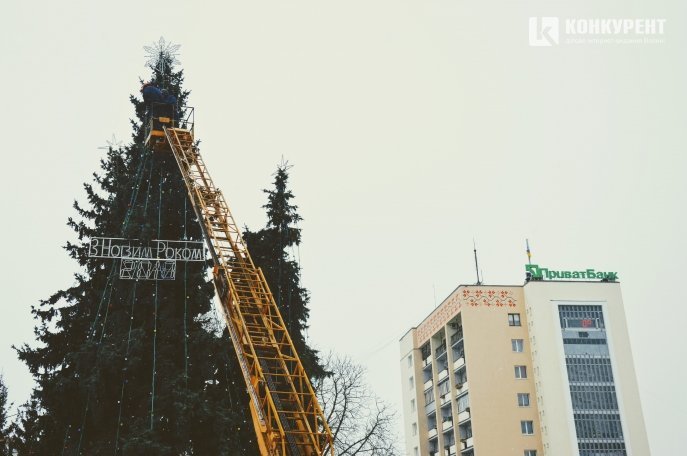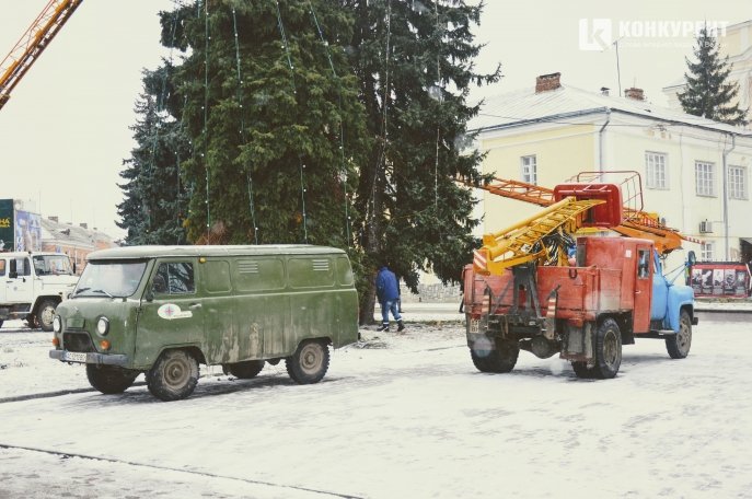 Працівники розповідають, що почали облагороджувати новорічні дерева ще минулого дня, а зранку 14 грудня продовжують роботи.