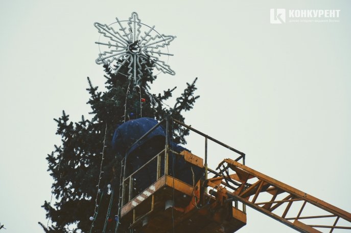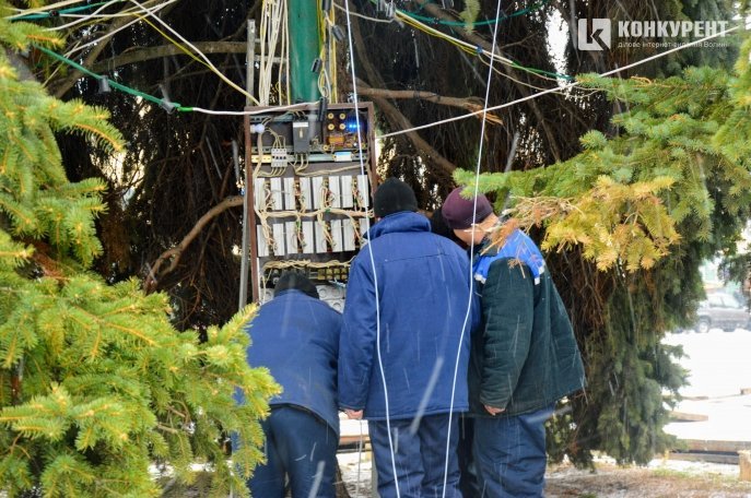 З десяток працівників КП "Луцьксвітло" обвішують дерева гірляндами та під'єднують їх до системи електропостачання, - повідомляє Конкурент.