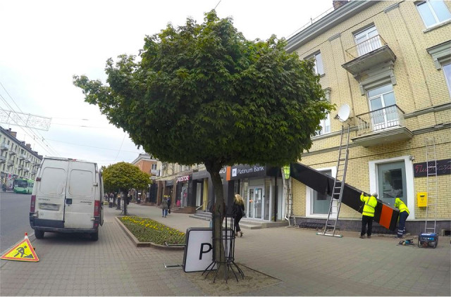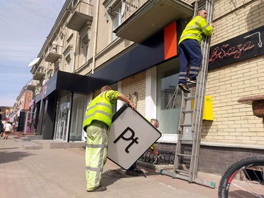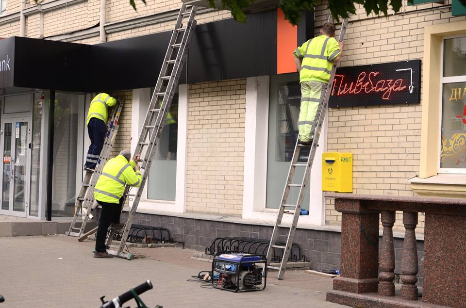 У центрі Луцька демонтували «неправильну» вивіску банку