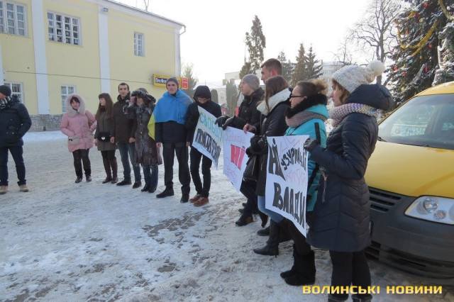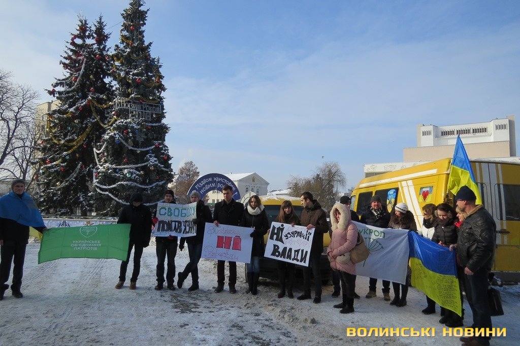 Флешмоб, який організувало «Українське об’єднання патріотів — УКРОП», відбувся 22 січня на Театральному майдані Луцька. Подібні акції, кажуть в УКРОПі, відбуваються одночасно у всіх районних центрах Волині та обласних центрах України.