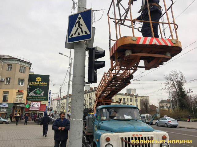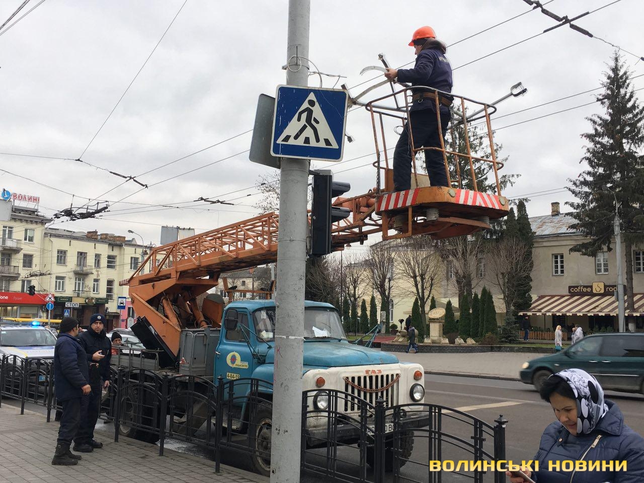 Світлофор, який регулює пішохідний перехід на проспекті Волі біля ЦУМу, збила вантажівка.