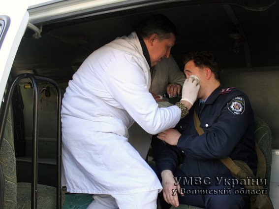 У центрі Луцька лунали вибухи і звуки сирен. Із проблисковими маячками до будівлі обласного управління міліції мчали автомобілі рятувальників і карети «швидкої допомоги» - так розпочиналися навчання.