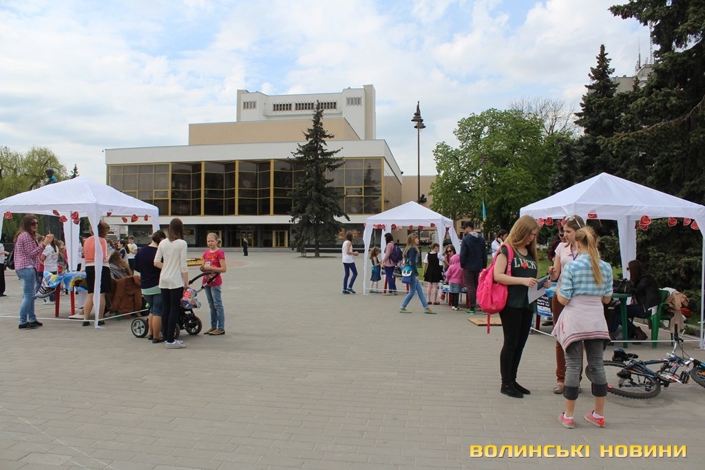 У центрі Луцька сьогодні, 27-го квітня, встановили три палатки, в яких проводили збір коштів для закупівлі медобладнання у волинські лікарні, яке необхідне для лікування дітей з вадами зору.