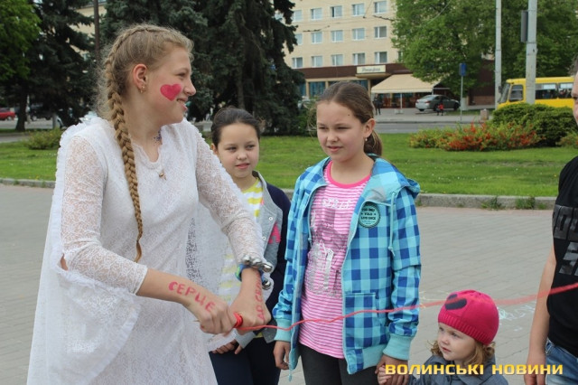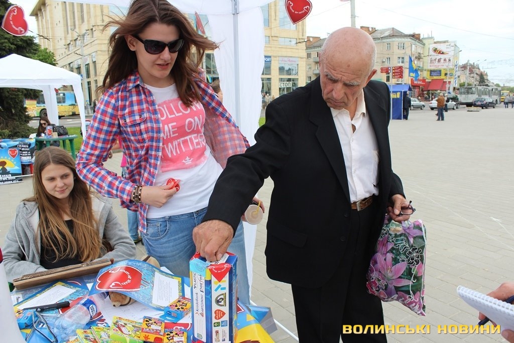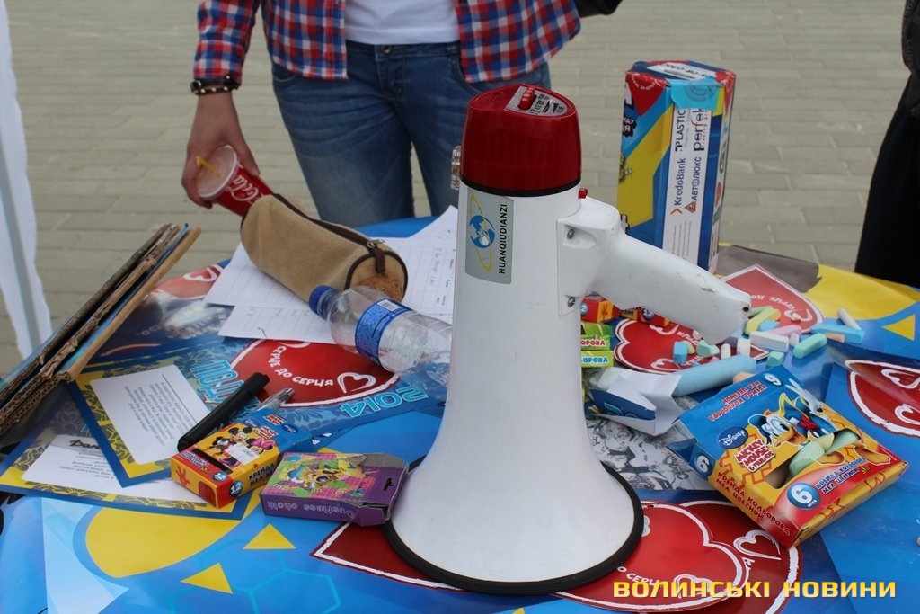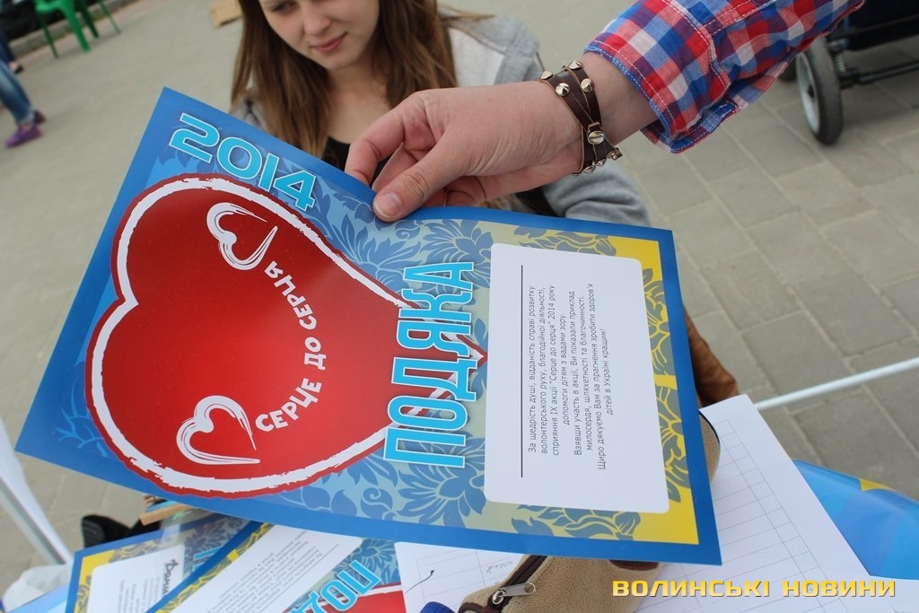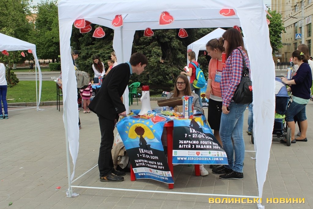 У «Містечку добрих сердець» працюють більше півсотні волонтерів. Вони залучали усіх прохожих до доброчинності. Особливо це тішило діток. Для них організували різні ігри й конкурси із солодкими подарунками. Конкурс малюнків, складання кубіка Рубіка на швидкість, конкурс малюнків на асфальті, танці – усе це вирувало в обласному центрі Волині.