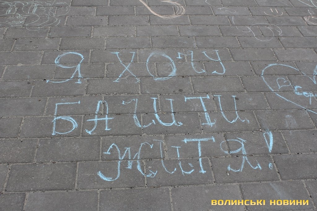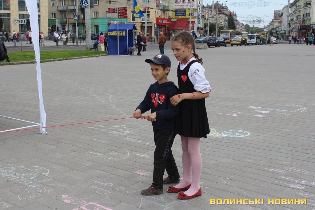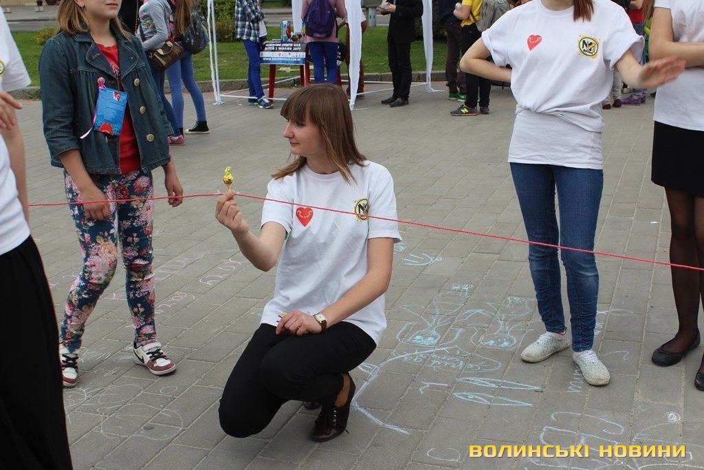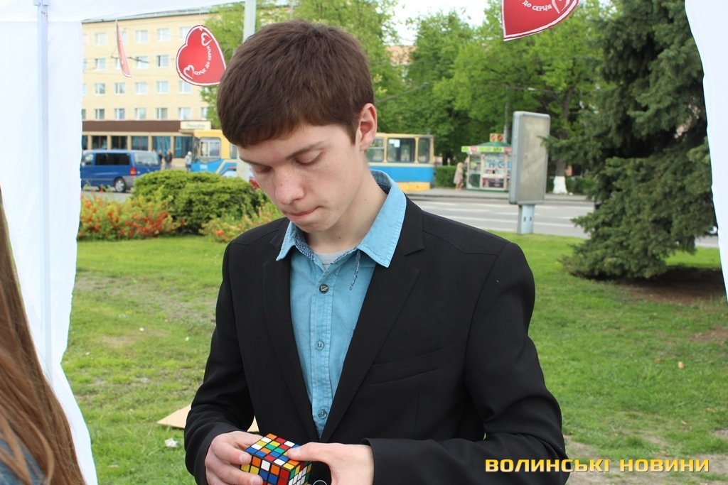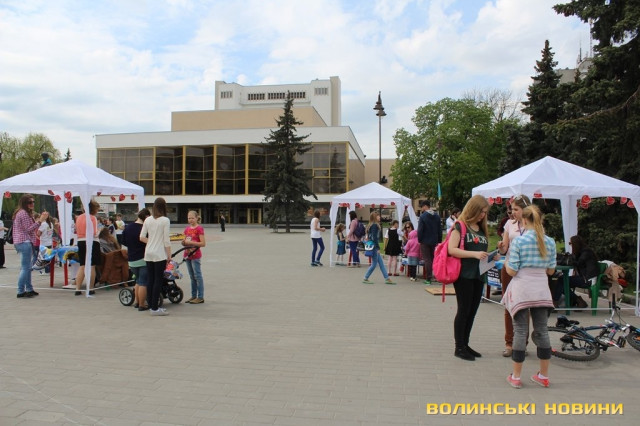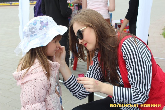 У «Містечку добрих сердець» працюють більше півсотні волонтерів. Вони залучали усіх прохожих до доброчинності. Особливо це тішило діток. Для них організували різні ігри й конкурси із солодкими подарунками. Конкурс малюнків, складання кубіка Рубіка на швидкість, конкурс малюнків на асфальті, танці – усе це вирувало в обласному центрі Волині.