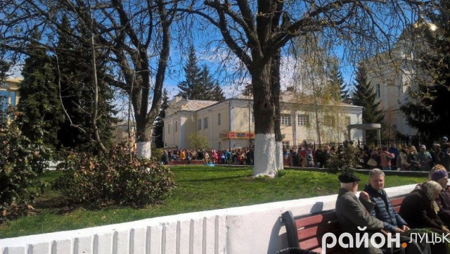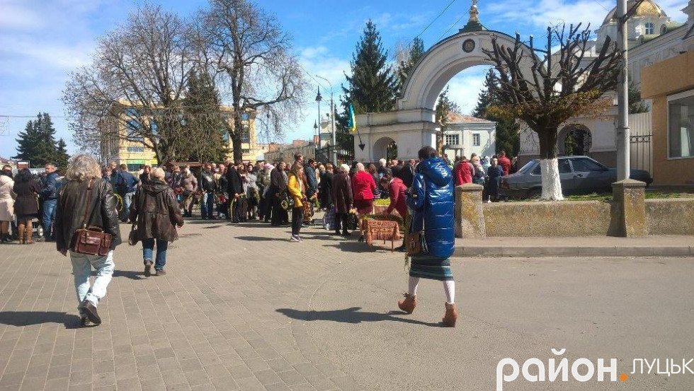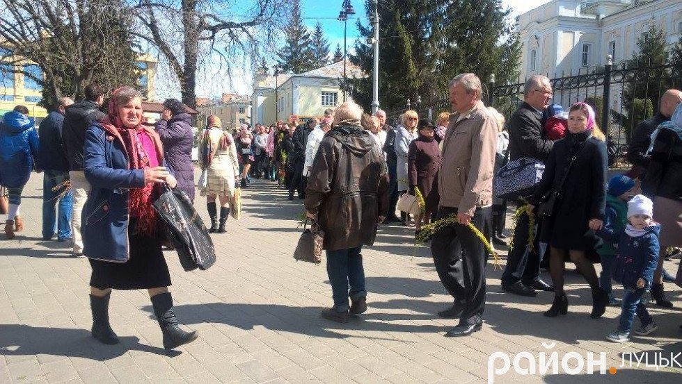 Лучани також не забувають дотримуватися християнських традицій. В очікуванні освячення вербових гілочок містяни заповнили не тільки територію Свято-Троїцього собору – черга простягнулася аж до Театрального майдану.
