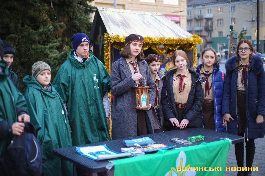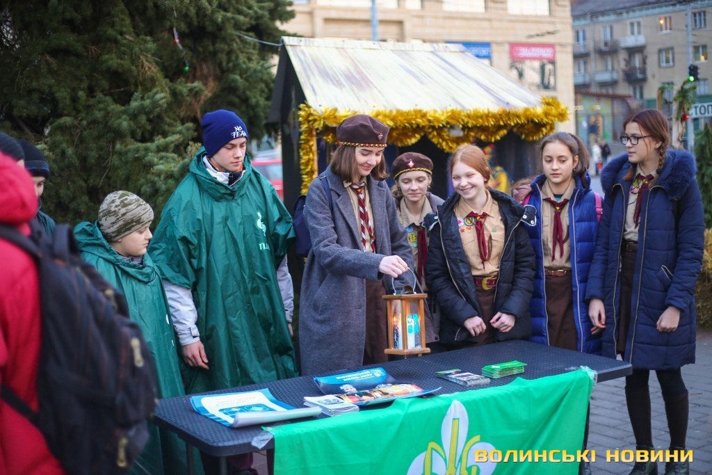 Як розповіла активістка Пласту Вікторія Петрук, вогонь з Вифлеєму передають щороку, де його беруть скаути з усього світу та розповсюджують всією планетою як символ поширення християнства в усьому світі. Луцькі пластуни отримували вогонь від польських харцерів на державному кордоні в Устилузі два тижні тому і вже встигли передати у різні райони Волині, приходили у школи, бібліотеки та різноманітні установи. Вона розповіла, що у Пласті вже впродовж двох років і цього року долучилася до усіх передач Вифлеємського вогню.