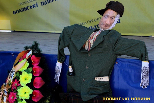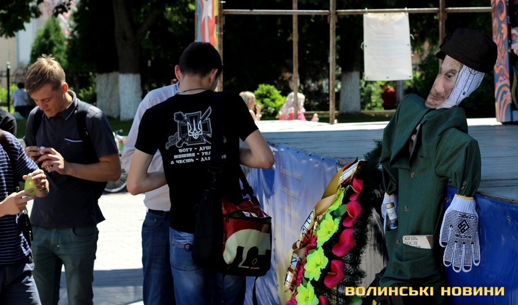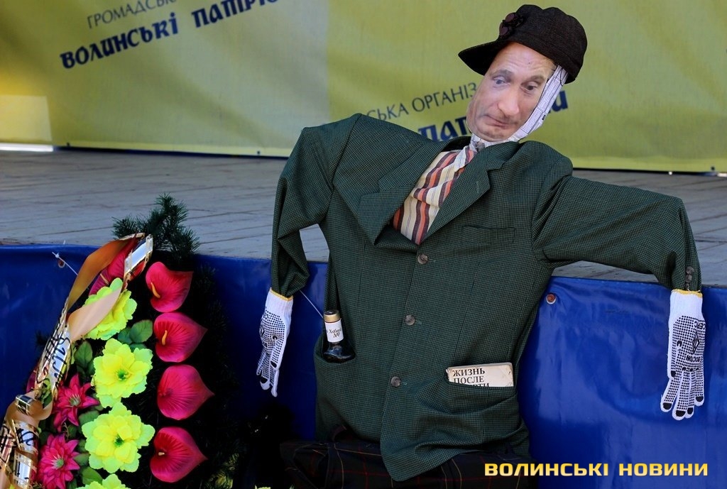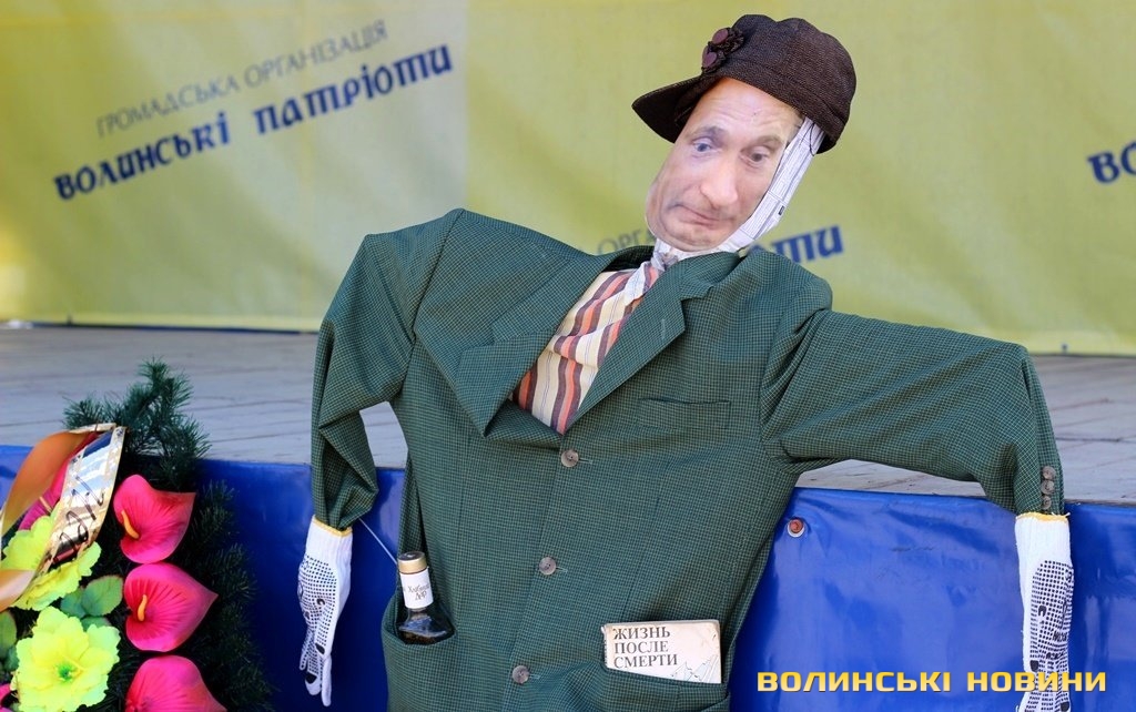 Для карлика-агресора «Путлєра» влаштували похорон у центрі Луцька. Під лозунги «Не забудемо, не простимо» городяни поклали вінки до, як кажуть, «істоти, яка давно перестала бути людиною».