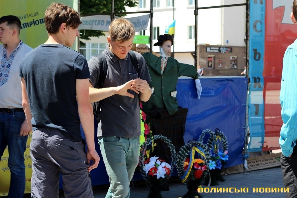 От такі тепер і каламутять народ.Задовбали вже тими непотрібними акціями-робити хай йдуть ті "активісти"-на будівництво,чорниці збирати-що слабо?Ясно що цю акцію хтось фінансує,бо це все не задарма.Стидоба що на фоні банерів патріоти Волині-це що наші нові такі патріоти?