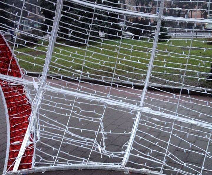 У центрі Луцька порізали гірлянди на новорічних ілюмінаціях