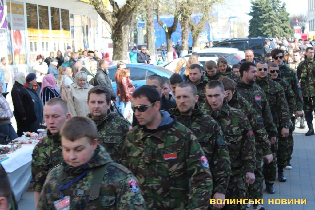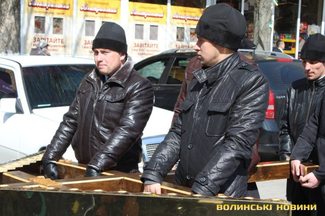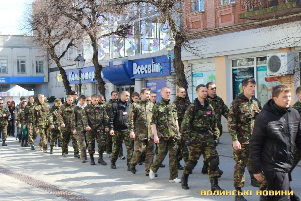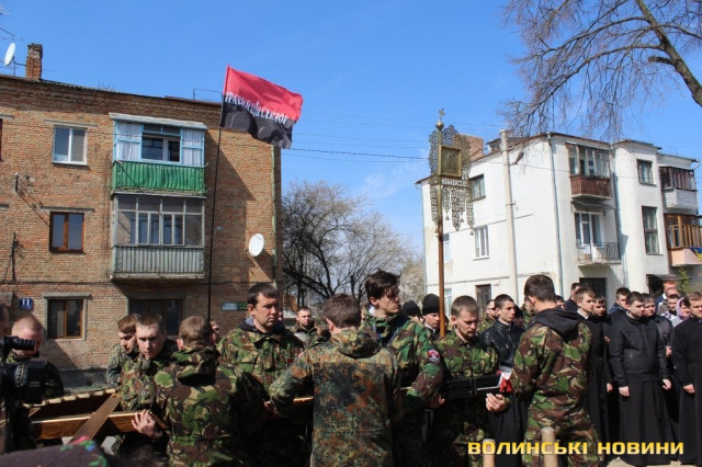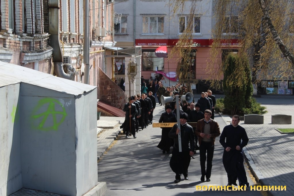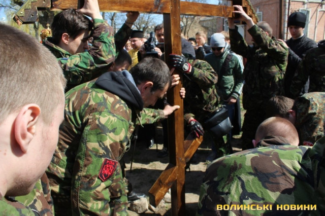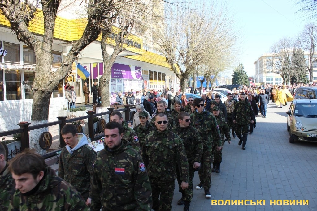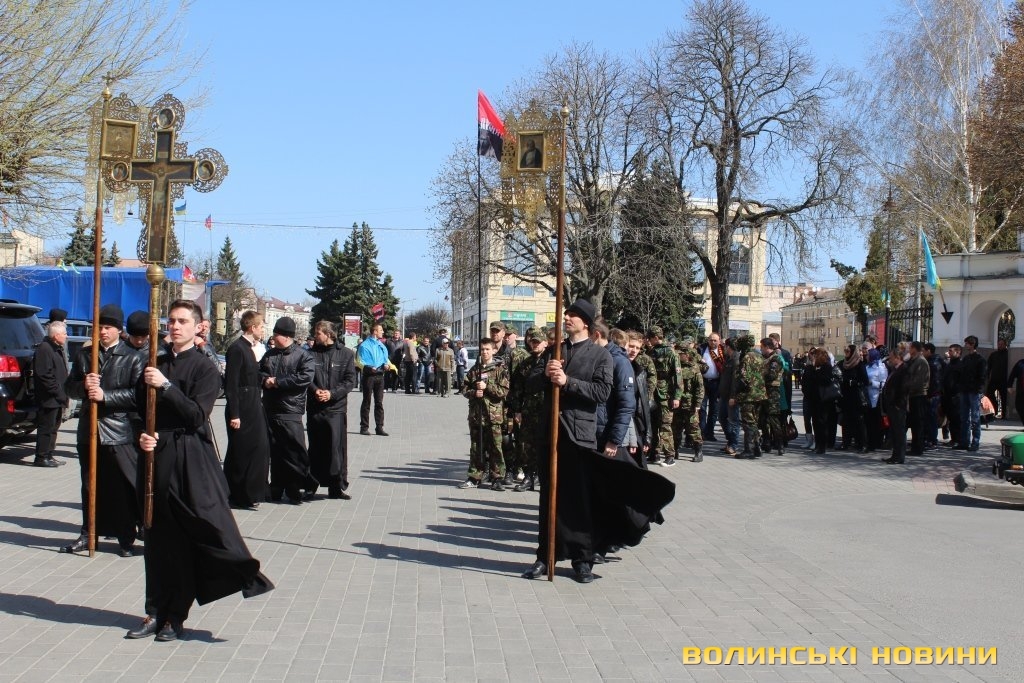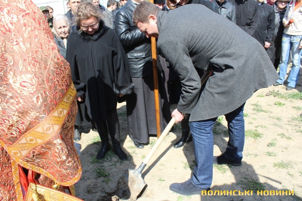 Участь у хресній ході взяли представники Правого сектора, вони ж встановили хрест на місці, де повинен постати храм. Чотири наріжні камені майбутнього храму встановили директор ДКП «Луцьктепло» Олександр Киричук, який, зі слів митрополита Михаїла, став ініціатором побудови храму, керівник Правого сектору на Волині встановили Павло Данильчук, голова ОДА Григорій Пустовіт та міський очільник Микола Романюк.