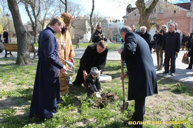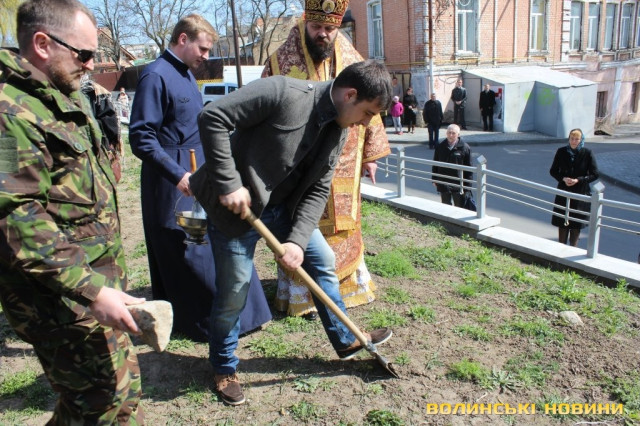 Встановили та освятили хрест на місці майбутньої церкви, присвяченої пам'яті Героям Небесної Сотні, у центрі Луцька на П'ятницькій гірці.