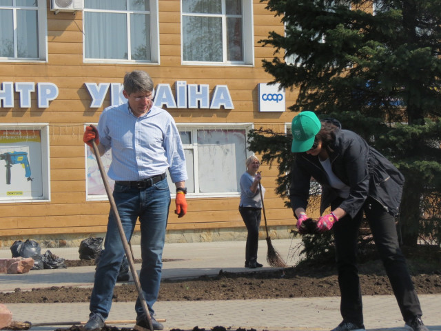 «У рамках загальноукраїнської акції УКРОПу спільно з селищним головою та небайдужими жителями сьогодні вдалося продовжити хорошу ініціативу з благоустрою центральної площі селища. Будемо сподіватися, що незабаром тут заквітнуть тридцять кущів прекрасних троянд, і це додасть позитиву та радості в житті людей», - зауважила народний депутат Ірина Констанкевич.