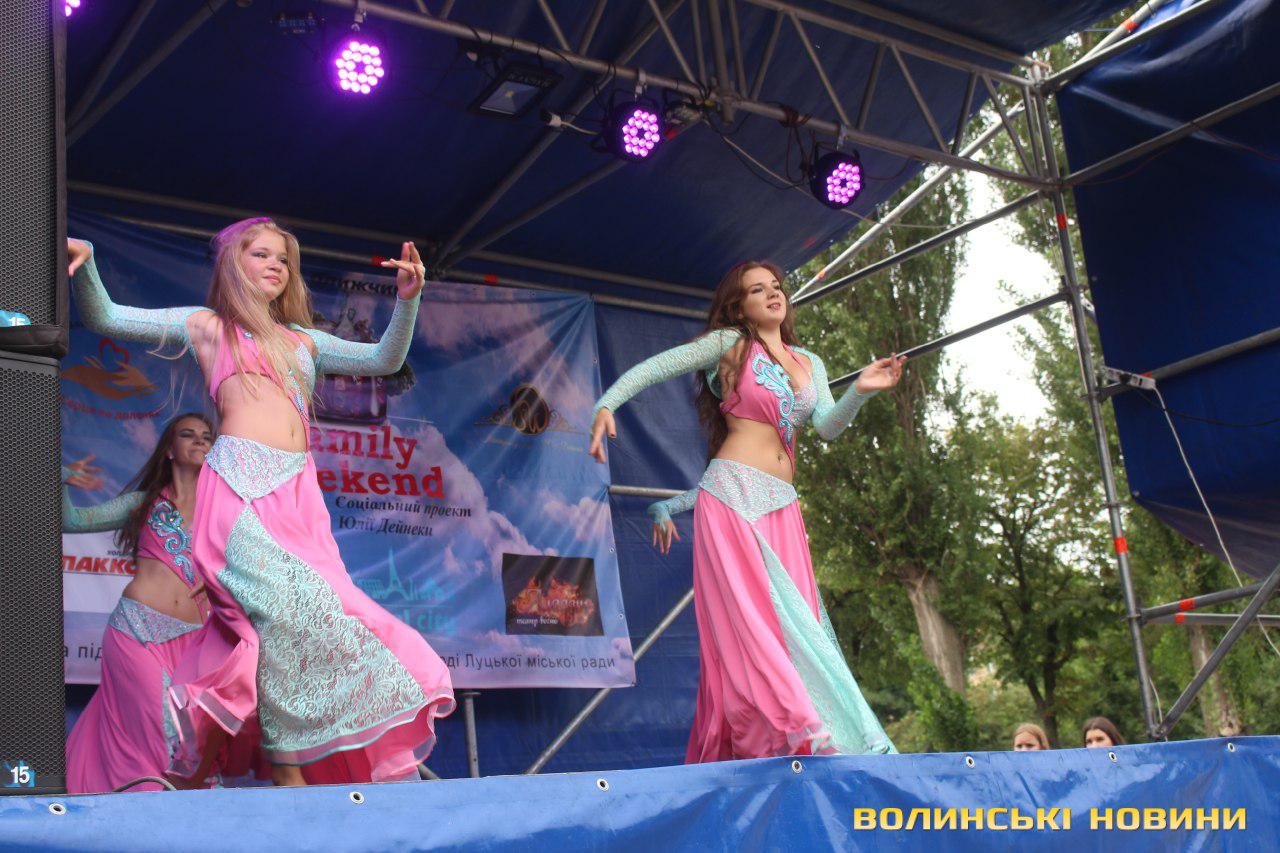 Колектив східного та сучасного танцю «Джаліла», який виступив на сімейному фестивалі «Family weekend», запалив серця лучан. А дітлахи, які були присутні на виступі, підтримали колектив своїми танцями.