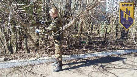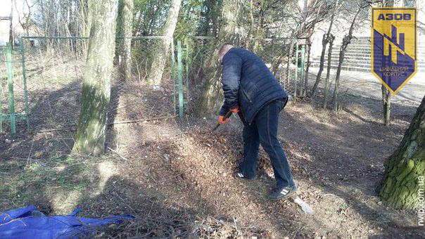 Активісти Цивільного Корпусу «Азов» у Нововолинськ організували прибирання території на вулиці Піонерській. Особливо вони облагороджували зелені насадження поблизу відділення «Укртелекому».