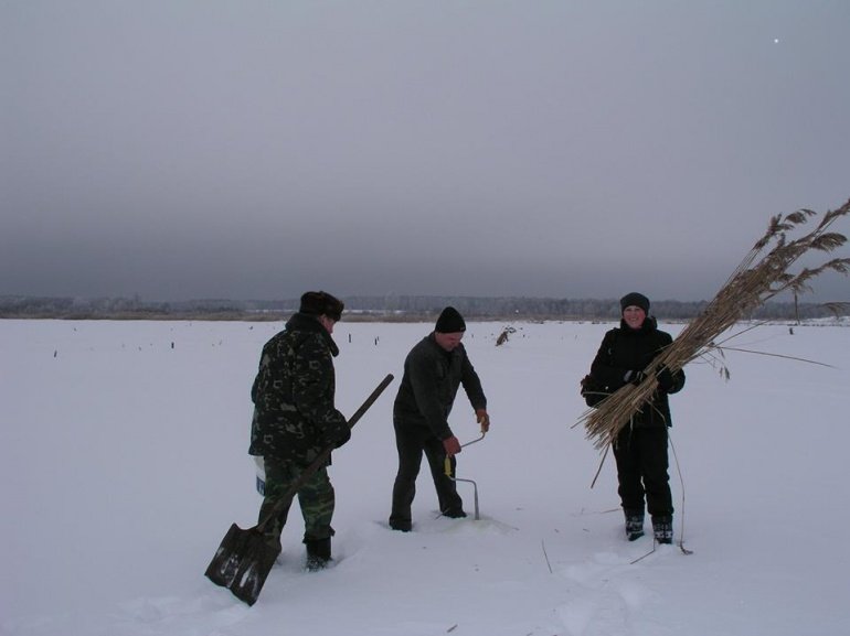 Бензопилами та декількома льодобурами вдалося пробурити найбільш залиті водою території боліт в напрямку від села Микове до села Журавичі та до села Клубочин. В ополонки вставили пучки накошеного на берегах очерету.