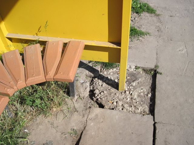 Після встановлення накриття на зупинках міського транспорту у Володимир-Волинському залишилися насипи землі та вибита бруківка.