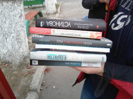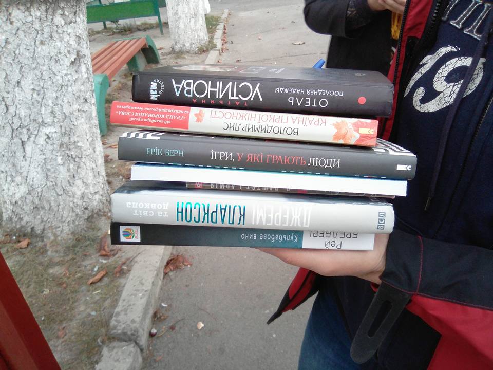 А сьогодні підходили знайомі і незнайомі люди, приносили книжки або обіцяли, що принесуть.