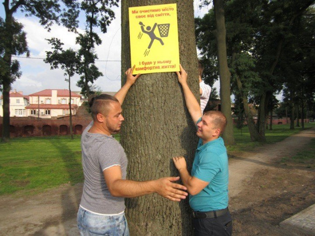 Оригінальні таблички можна побачити у місцях, де люди люблять проводити дозвілля. Зокрема, у парку Слов’янському, на громадському пляжі поблизу села Заріччя, у сквері біля історичного музею та парку по вулиці Героїв Небесної Сотні. Таким чином молодь закликає людей не смітити.