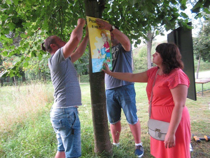 Оригінальні таблички можна побачити у місцях, де люди люблять проводити дозвілля. Зокрема, у парку Слов’янському, на громадському пляжі поблизу села Заріччя, у сквері біля історичного музею та парку по вулиці Героїв Небесної Сотні. Таким чином молодь закликає людей не смітити.